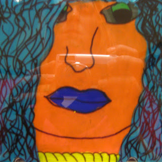 We drew our faces on front using sharpies and then opened the CD case to paint our faces... we made them bright, bold and beautiful. (painting on the inside prevents the paint from scratching off). Then we used one 4 3/4" x 5" paper for writing words that describe us. These words went behind our portraits. The CD cases are then completely usable (would be an awesome way to send home a digital portfolio).